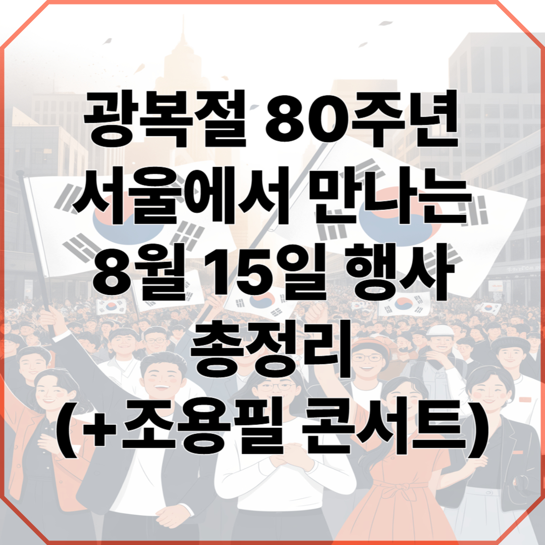 다가오는 2025년 8월 15일, 대한민국은 광복 80주년이라는 뜻깊은 날을 맞이합니다. 올해 광복절은 단순한 기념이 아닌, 국민 주권과 문화 예술의 가치를 되새기는 다채로운 행사들이 전국에서 펼쳐집니다. 특히 서울에서는 역사와 예술이 어우러진 다양한 공연, 체험, 전시가 진행되며, 조용필 콘서트 소식까지 함께 주목받고 있습니다.