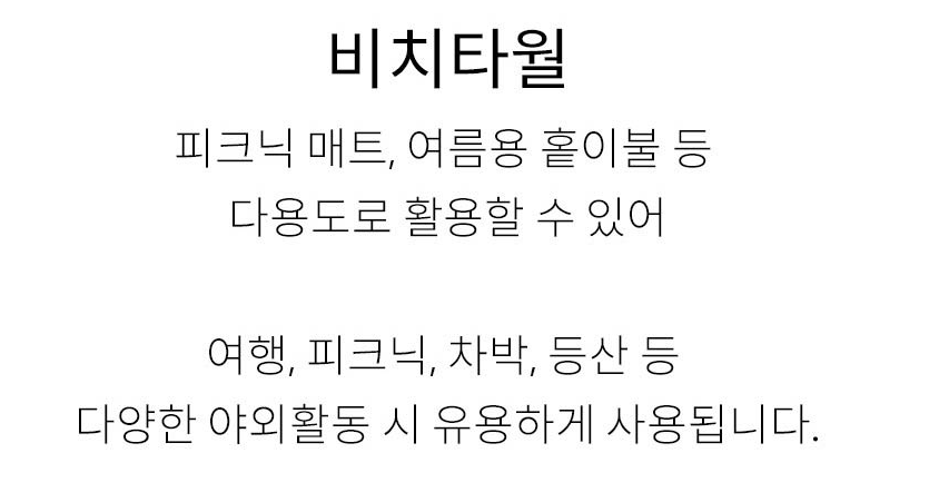 - 구성: 비치타월 1개 + 설명서 + 비닐 패키지