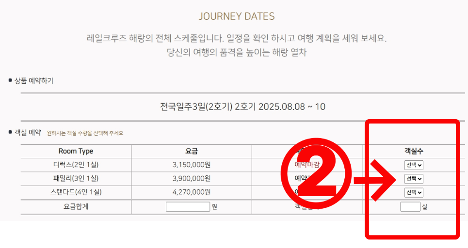 4. 객실별 가격 & 선택 팁 (2025 전국일주 2박 3일 기준)