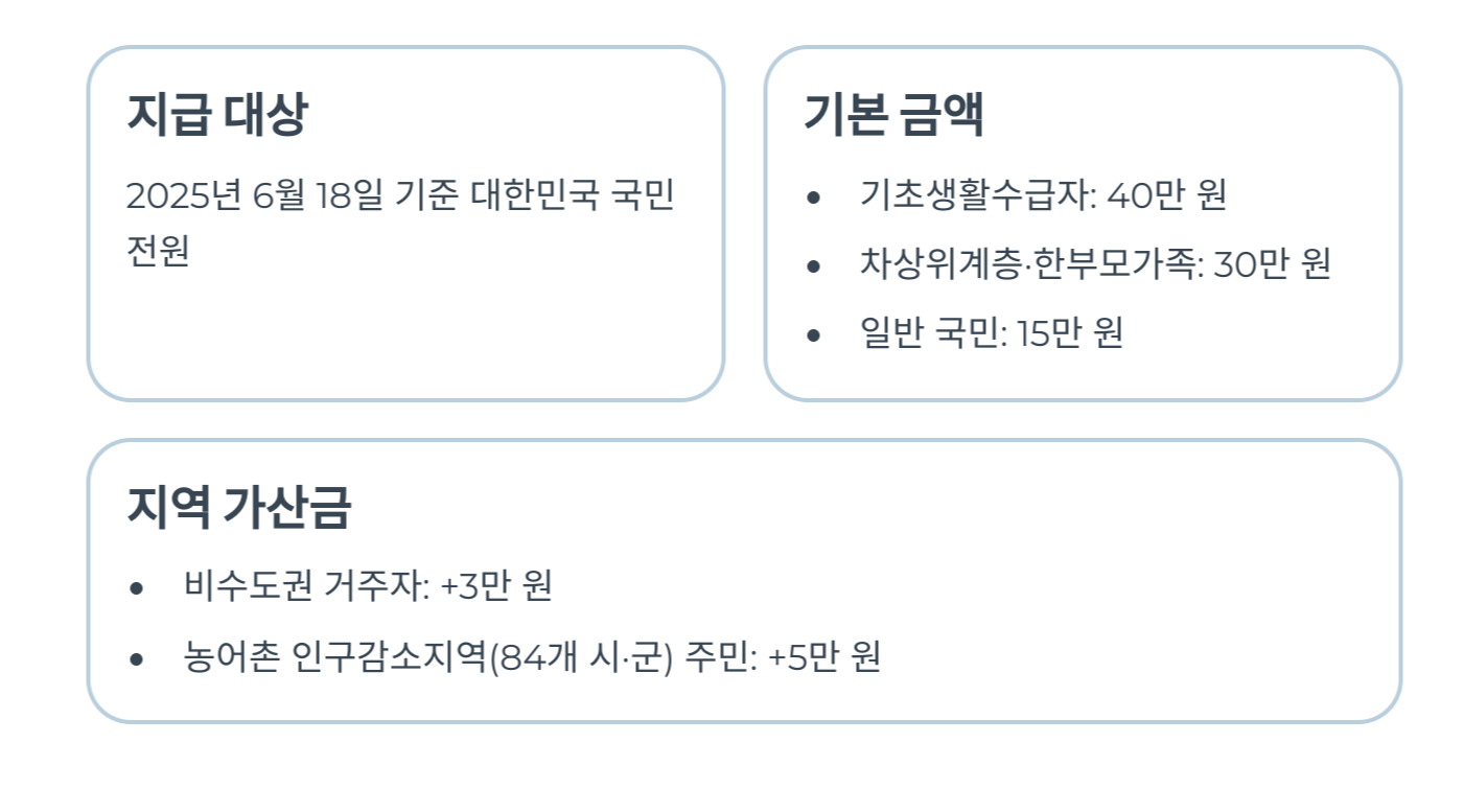 ▶ 지급 대상: 2025년 6월 18일 기준 대한민국 국민 전원