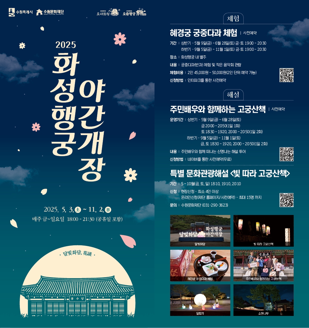 - 문의처: 수원문화재단 관광육성팀 ☎ 031-290-3623