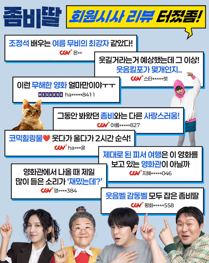 “좀비딸 매주 챙겨봤기 때문에 개봉 날 올 수밖에 없었다. 애용이 너무 귀엽다!”
